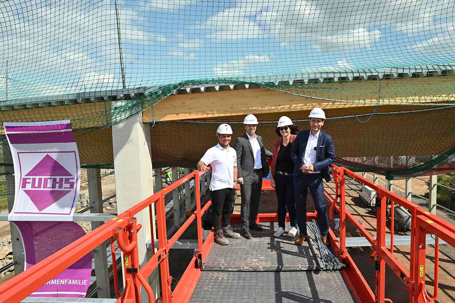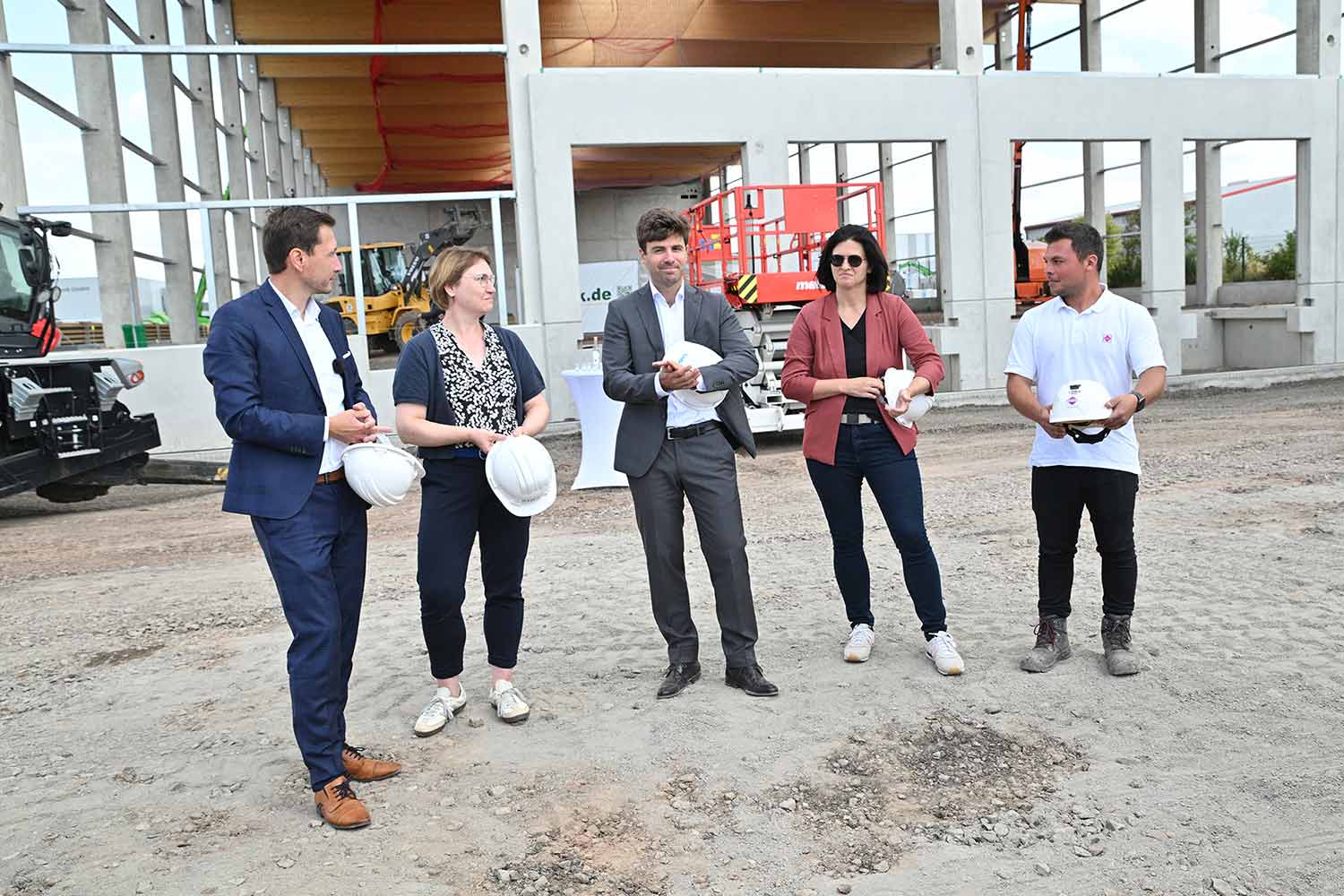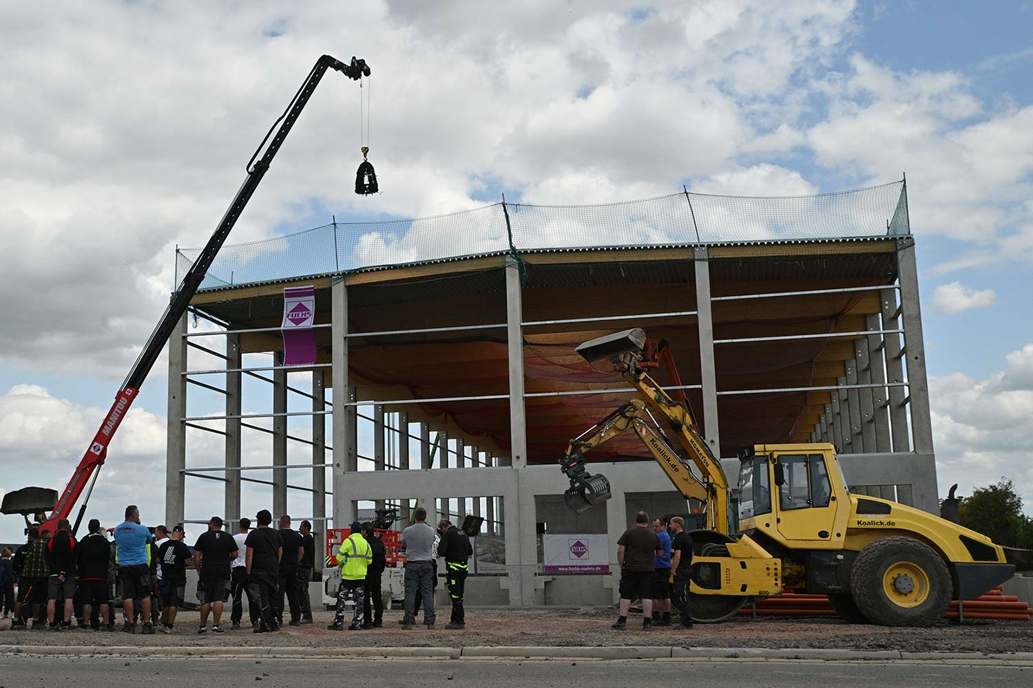 Wie nachhaltiges Wachstum durch versierte Bauausführung aussieht, zeigt sich derzeit für SIGA in Halberstadt (Sachsen-Anhalt). Das große Ziel, mit dem neuen Standort den deutschen Markt noch besser zu bedienen, rückt für den Systemanbieter für luftdichtes und energieeffizientes Bauen in immer greifbarere Nähe. Erst im Mai feierten wir gemeinsam den symbolischen Spatenstich am neuen Gewerbestandort. Nun, rund drei Monate später, galt es der strategisch bedeutsamen Niederlassung im Harz beim Richtfest die Krone aufzusetzen. Gemeinsam mit geladenen Gästen aus Kommunal- und Landespolitik, Vertreter*innen unseres Auftraggebers und weiteren Projektbeteiligten zelebrierten wir den erreichten Meilenstein.