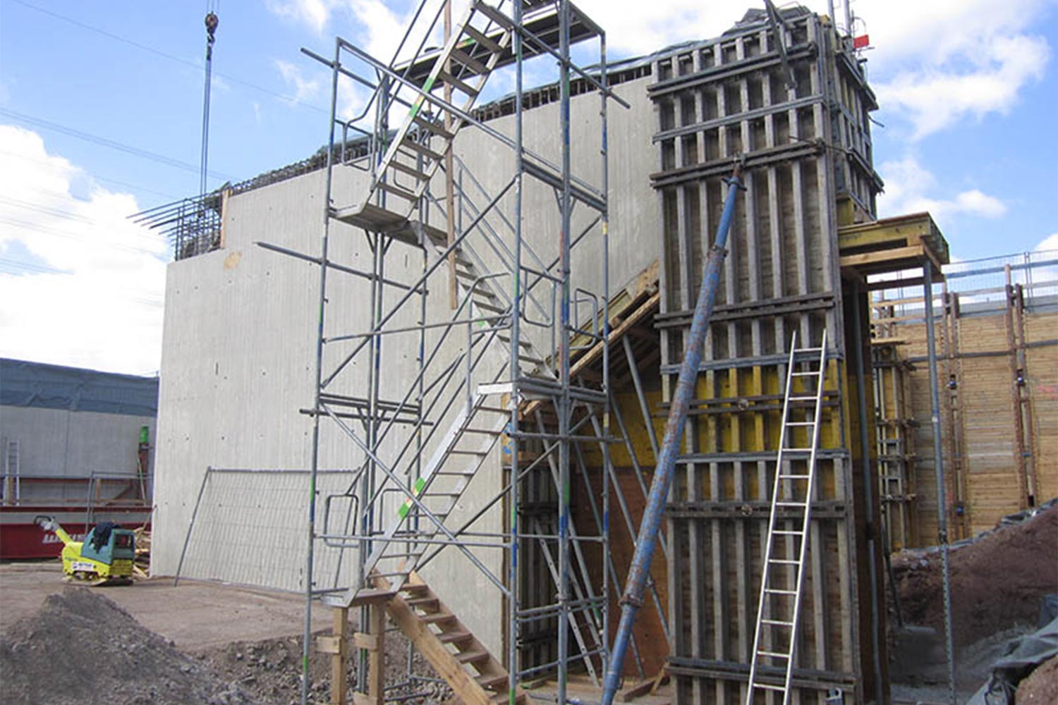 Die Baugrubensicherung erfolgte mit Trägerbohlverbau und Rückverankerung durch Verpressanker. Die Sicherung der B 470 wurde durch unverankerten Trägerbohlverbau erreicht.