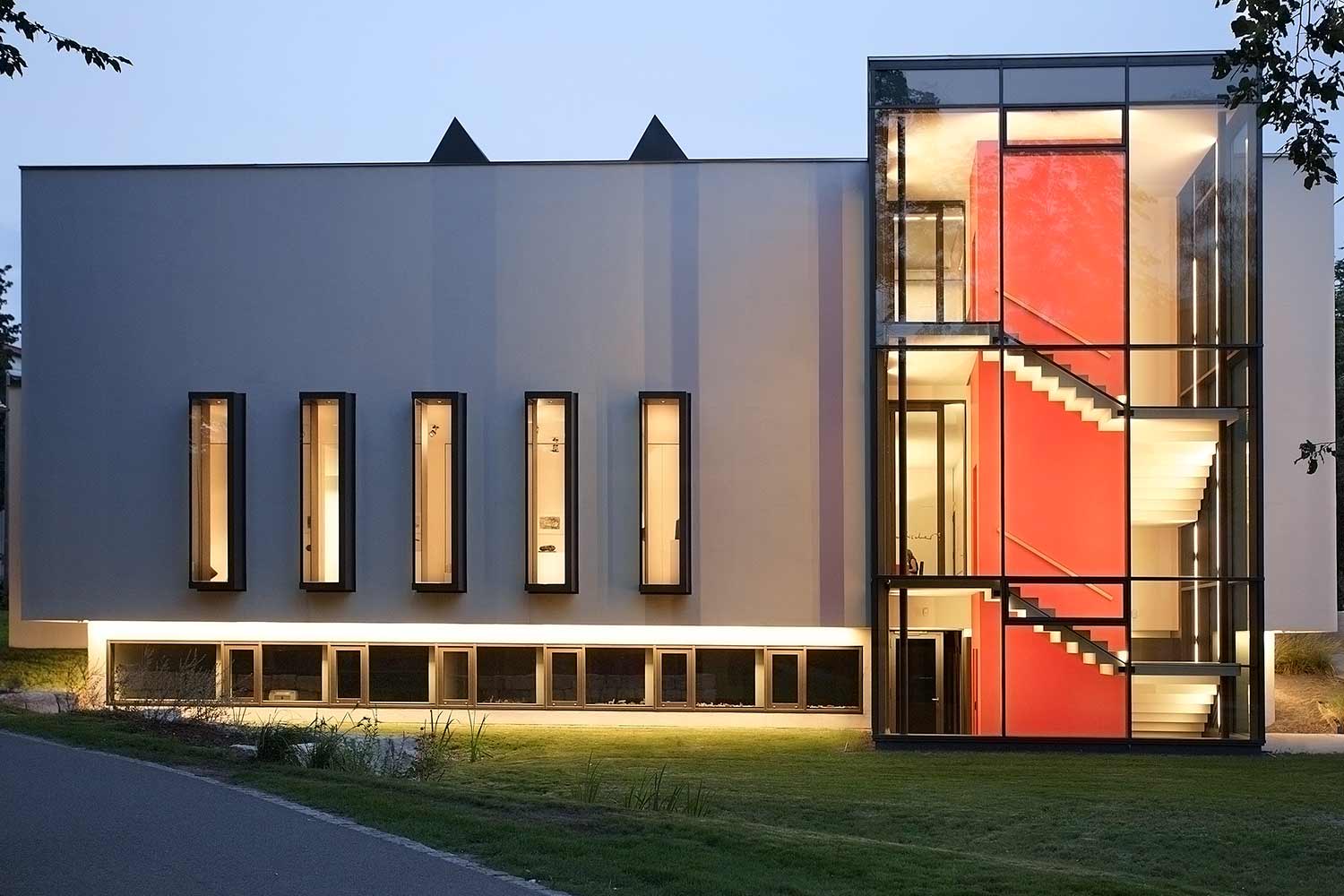 Ausstellungsfläche von rund 550 m2 auf zwei Etagen, Gründung auf Bohrpfählen, Integration von Wandheizung / Geothermie.
