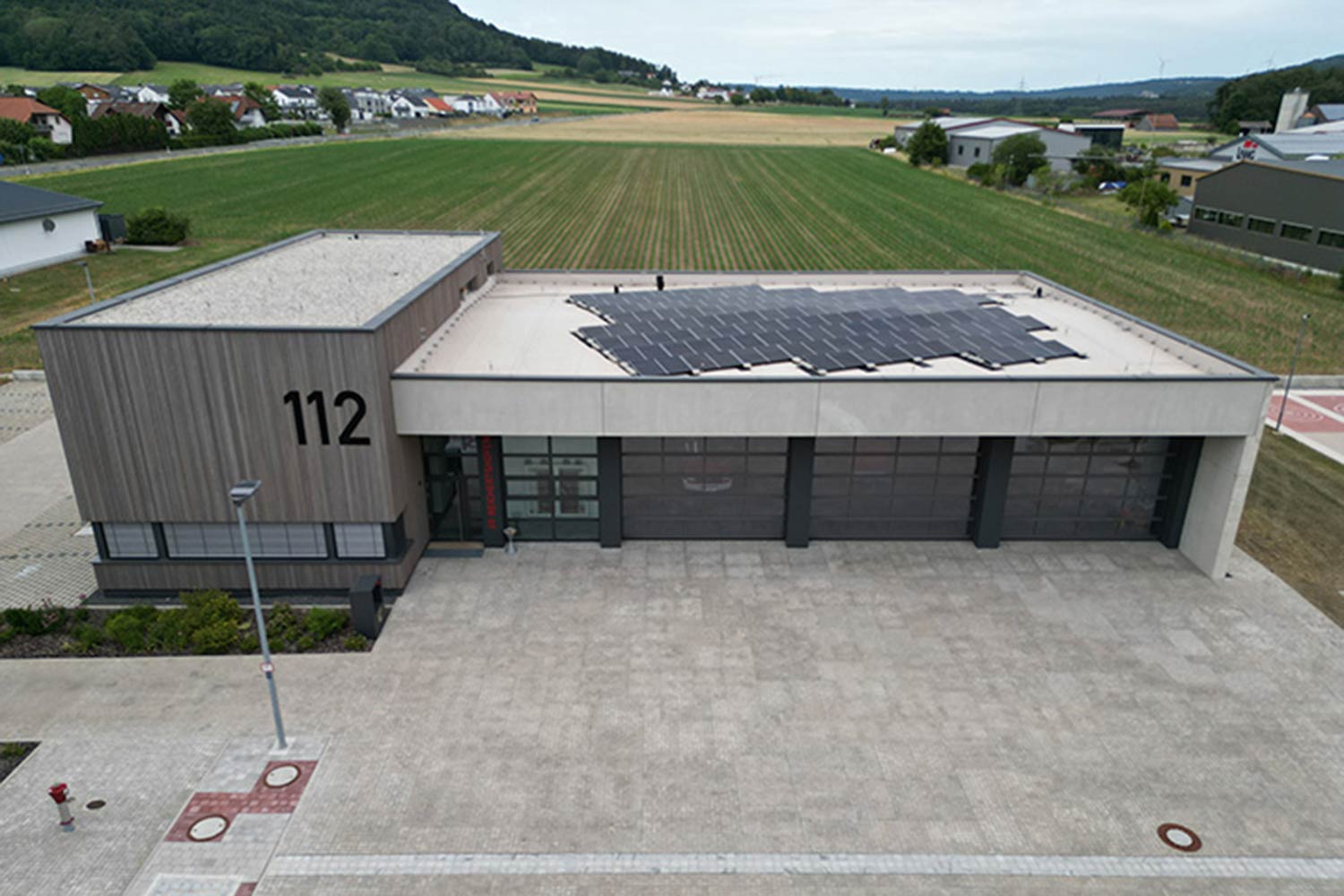 Da die ursprüngliche Feuerwache im Ortskern Reichertshofen bei Sengenthal aus allen Nähten platzt, bekommt die Feuerwehr durch FUCHS Bau Süd ein neues Domizil. Deshalb errichteten wir auf einem rund 2.500 m² großen Grundstück ein neues Feuerwehrhaus, das aus einem Sozialtrakt in Holzbauweise und einer Fahrzeughalle in Betonbauweise besteht. Der Sozialtrakt umfasst Umkleideräume, WCs, Versammlungsräume, Werkstatt, Lager sowie ein Büro und ist mit einer Fußbodenheizung zur Niedertemperaturversorgung ausgestattet. Für ein angenehmes Raumklima sorgt eine Zentrallüftungsanlage mit einem Volumenstrom von 300 m³/h. Die Trinkwasserinstallation ist bis zum letzten Verbraucher durchgeschleift und mit einer automatischen Hygienespülung versehen, die im 72-Stunden-Takt ein definiertes Leitungsvolumen spült, um auch bei längeren Stillstandszeiten eine hygienisch einwandfreie Wasserqualität zu gewährleisten.
