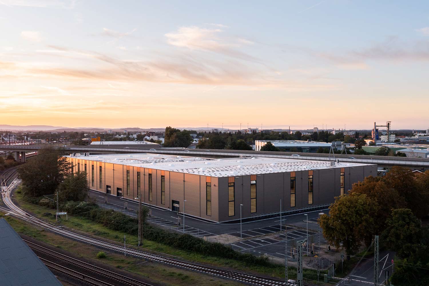 Auf 66.000 m² Fläche entstehen in nur gut einem Jahr Bauzeit enorme 28.000 m² Hallenfläche für Logistik, Gewerbe und Industrie. Der Holzpark Hanau entsteht – wie es dem FUCHS Standard entspricht – in der Effizienzklasse 40. Inbright strebt zudem den DGNB Gold Standard an. Mit einer möglichst fossilfreien Heizung will der Bauherr zusätzlich den Klimaschutz fördern.